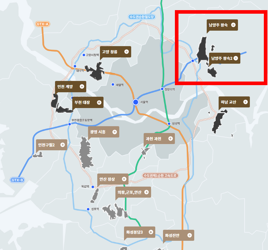 참고로 3기신도시 분양을 준비하시는 분들은 유명한 5개의 지구인 고양창릉, 남양주왕숙, 인천계양, 부천대장, 하남교산뿐 아니라 나머지 신도시들도 괜찮은 곳들이 꽤 있습니다. 이런 부분들도 계속 다룰 예정이니 꼭 확인해 보시길요. 그러면 가장 먼저 남양주왕숙부터 보시죠.