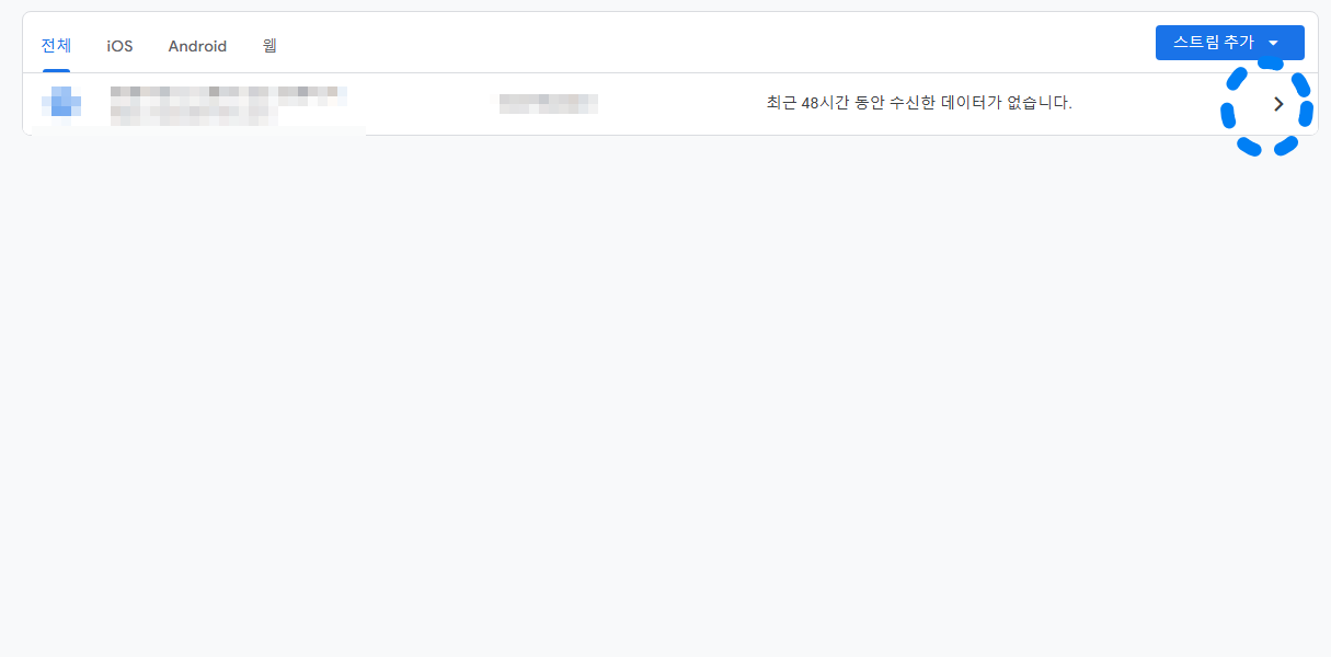그 다음 중간은 중간에 있는 데이터스트림을 클릭하시면.