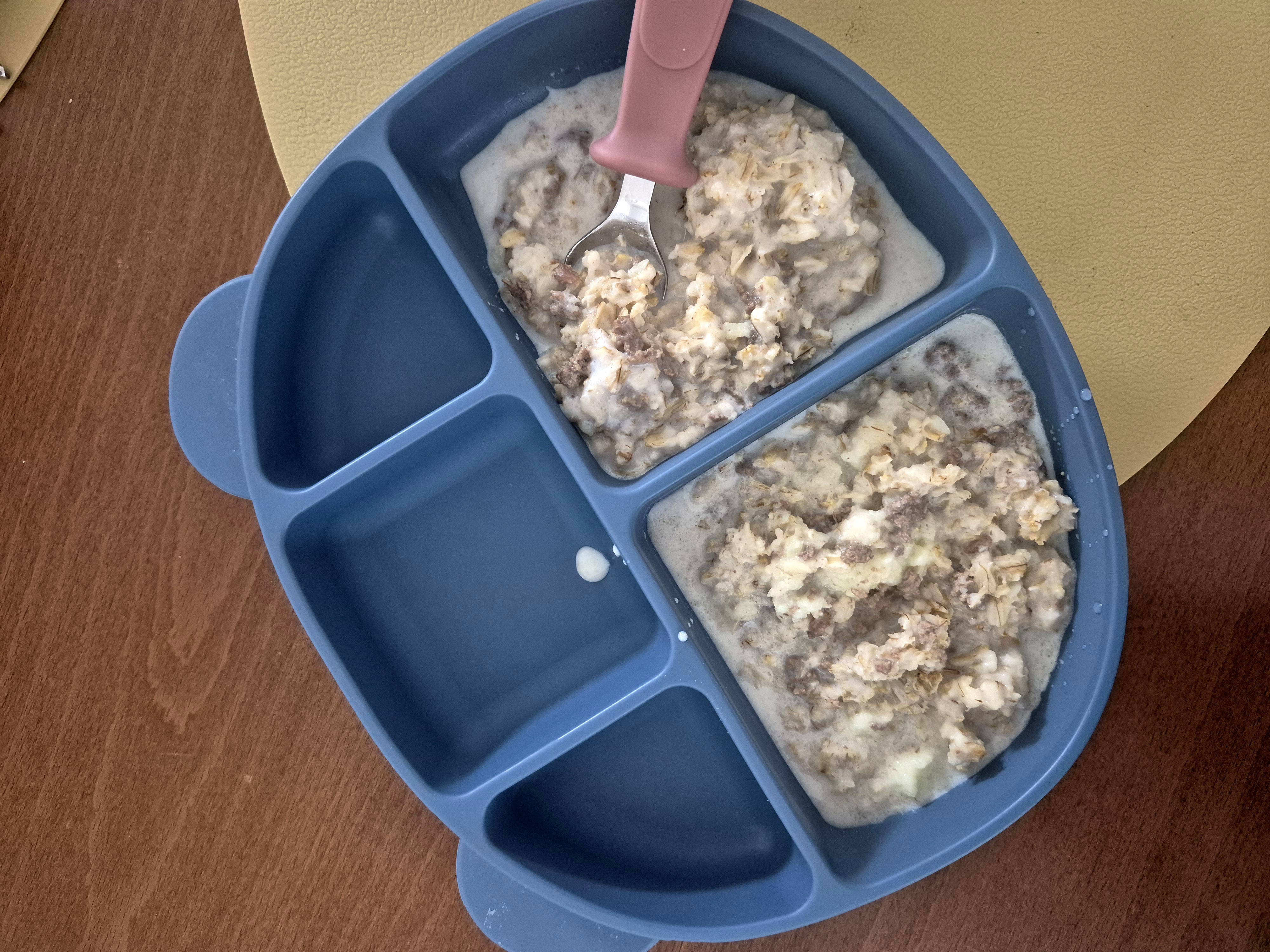 아침에는 밥보다는 오트밀을 주로 챙겨줍니다. 아침까지 밥을 준비하는 것이 조금 힘들고, 추후 복직했을 때를 생각해서 최대한 간편하게 만들 수 있는 것을 생각하다가 오트밀을 주기 시작했습니다. 아이가 생각보다 오트밀에 대한 반응이 좋은 편입니다.